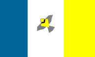 Brian Truncale, a visitor to my page, very generously giffed several versions of my design that were infinitely less lame than the one I had up here. In fact, they look pretty darn good. The one above is his straightforward rendering of my design. He also had two slight modifications of that design. Note that on the flag on the right, the shade of blue is that on the current flag (instead of the darker blue I called out), and the meadowlark is flying to the northwest, symbolic of Oregon's geographical position.